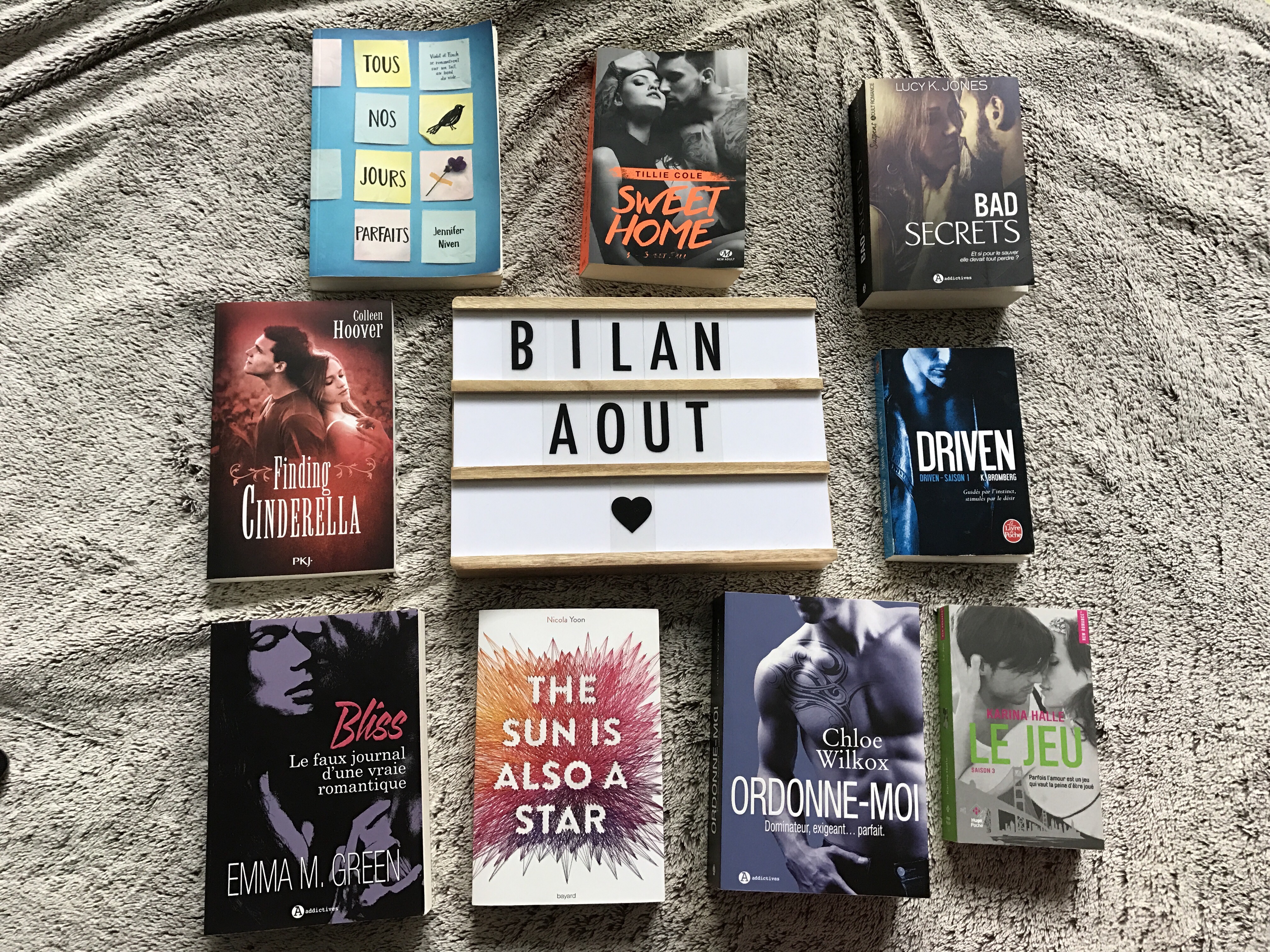 J’avais fait une liste de livres que je voulais lire lors de mon dernier bilan. Et je ne m’y suis pas entièrement tenue. Mais j’ai quand même bien fait diminuer ma PAL. J’ai lu la moitié des livres prévus à la base. Et je compte continuer. Notamment en poursuivant ma lecture de la saga Driven.