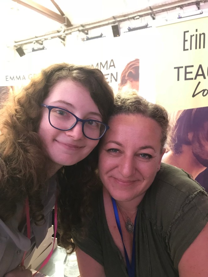 Je suis ensuite allée voir Erin Graham. Si vous suivez un peu mes avis, vous devez savoir que c’est une auteure que j’aime beaucoup. C’est une de mes plus belles découvertes de 2018. Je prends plaisir à lire chacune de ses histoires. Et je vous recommande chacune d’elle, même s’il m’en reste encore pas mal découvrir. C’est devenu une valeur sûre pour moi. J’étais vraiment contente quand j’ai vu qu’elle faisait partie des auteures invitées au festival. Ça a vraiment été une chouette rencontre.