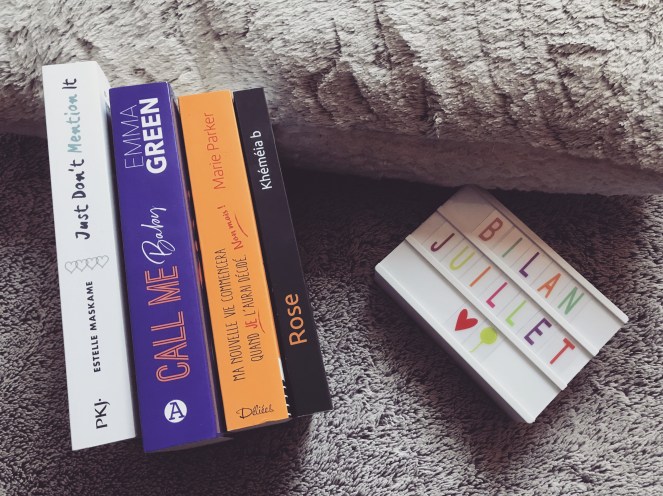 Joli bilan 🙂 En Juillet, je me suis acheté : Just don’t mention it & Off-Campus Tome 4. Niveau lecture, j’ai lu : Viens, on s’aime et Cooper Training Tome 1. Heroes, je l’ai abandonné, parce que ce n’était pas le bon moment, pour moi de le lire ^^