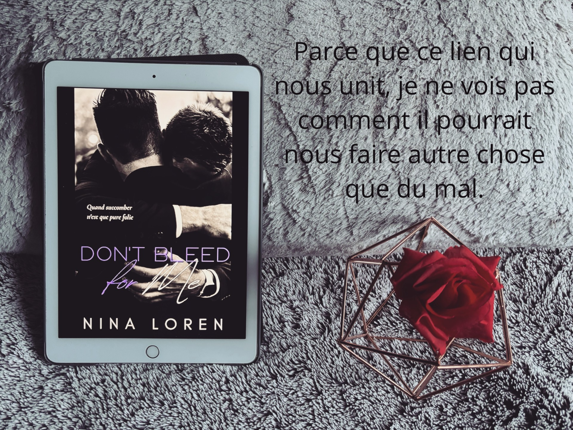 J’ai beaucoup aimé cette histoire intense, poignante et complexe. Le résumé étant assez mystérieux, je ne m’attendais pas du tout à une telle intrigue. Nina Loren nous offre une nouvelle romance forte en émotions. J’ai eu le cœur brisé et les larmes aux yeux. Mais j’ai aussi eu le sourire et mon cœur s’est gonflé d’amour par moments. C’est une histoire d’amour à part, qui sort des sentiers battus et nous chamboule tout autant que les personnages. Le lien entre les personnages est difficilement compréhensibles au départ mais il se révèle si beau et même thérapeutique pour eux. Ce n’est pas une dark romance mais il y a quand même des trigger warning, notamment à cause du passé sombre des personnages. Des sujets sensibles sont évoqués comme la santé mentale. Ce n’est pas un roman dont on ressort indemne. La plume de l’auteure est percutante.